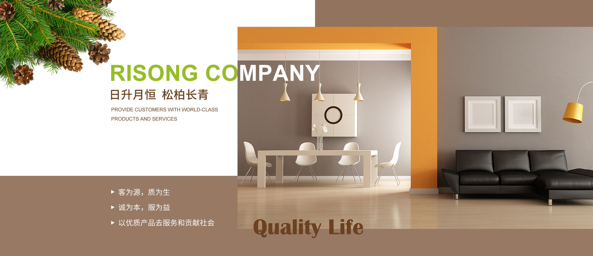 大連日松將一直秉承“以?xún)?yōu)質(zhì)產(chǎn)品去服務(wù)和貢獻(xiàn)社會(huì)”的經(jīng)營(yíng)宗旨;“客為源,質(zhì)為生、誠(chéng)為本、服為益”的經(jīng)營(yíng)理念;達(dá)到“使用者、銷(xiāo)售者、制造者”三者并存共榮之經(jīng)營(yíng)思路;全體日松人將以“熱情、禮貌、快捷、準(zhǔn)確”的行動(dòng)指南,不懈努力的為每一位客戶,提供行業(yè)內(nèi)一流的高端、環(huán)保、舒適、健康的產(chǎn)品和細(xì)節(jié)服務(wù),打造出適合“您”的優(yōu)質(zhì)家居住宅環(huán)境。